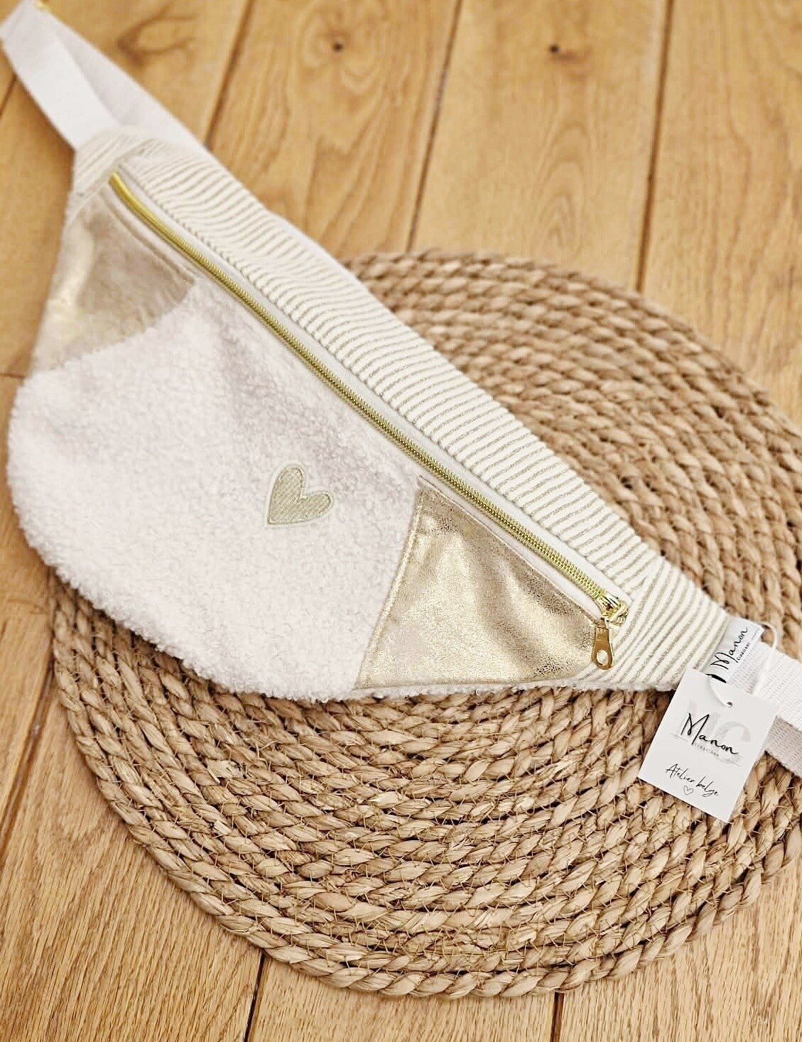 Sac en coton et suédine beige et doré.